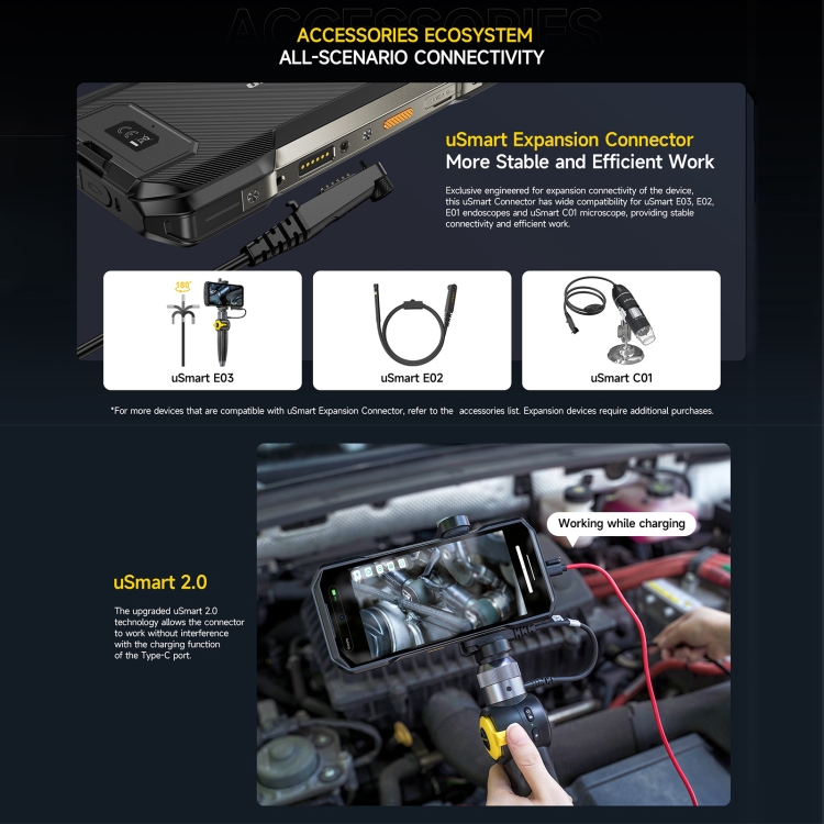 7. Erweiterungsanschluss 2.0: uSmart-Erweiterungsanschluss, unterstützt Zubeh?r der uSmart-Serie.Und der Typ-C-Anschluss erm?glicht das Laden, w?hrend der uSmart Connector funktioniert.