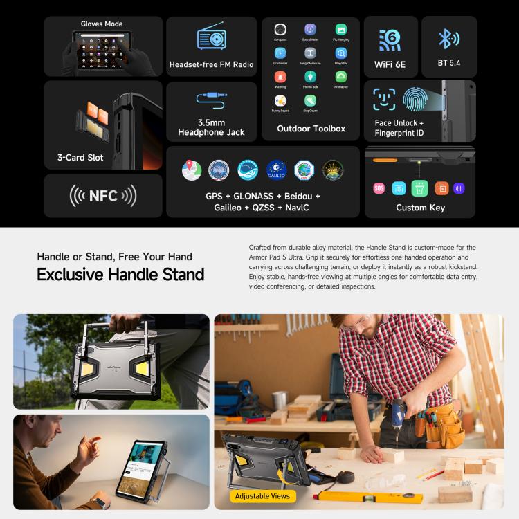 Ulefone Armor Pad 5 Ultra Tablet PC mit Projektor, 12 GB + 512 GB, 11 Zoll